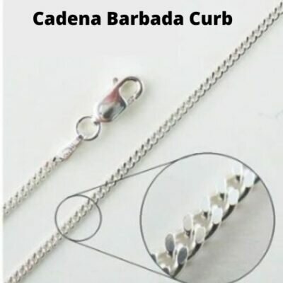 La cadena barbada, también conocida como cadena de bordillo, cadena curb es aquella en la que cada eslabón está ligeramente retorcido y a menudo martillado, creando una impresionante cadena plana Es una ligera variación de la clásica cadena de cable. También recibe el nombre de cadena grumet, grumetta, es un clásico atemporal y un elemento básico para todos los propietarios de joyas.