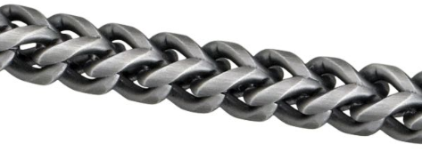 Con las cadenas Franco, aunque cada eslabón tiene una única forma de V en cada superficie, están formadas por eslabones individuales y en forma de caja (¡en lugar de Foxy!). Cada eslabón se engancha a otro, seguido de otro y se ve claramente dónde empieza y termina la unión de cada eslabón.