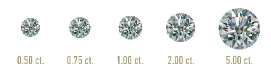 Los diamantes redondos parecerán de su tamaño en quilates, sin embargo, cuando se compara un diamante en forma de pera de 1 quilate con un diamante redondo de 1 quilate, la pera casi siempre parecerá más grande.